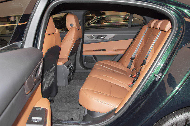 回到产品本身,捷豹 XEL 的英伦设计是无可替代的亮点。标志性的 “风暴眼” LED 大灯与机盖上的金线呼应,搭配黑色外观套件和红色卡钳,运动感十足;环抱式运动座舱、带有跑车元素的方向盘,握在手里能让人找回燃油车独有的驾驶仪式感,这是很多新能源车型难以复制的格调。2017 年国产后,轴距加长 10 厘米,解决了海外版空间局促的问题,日常家用也能应对。